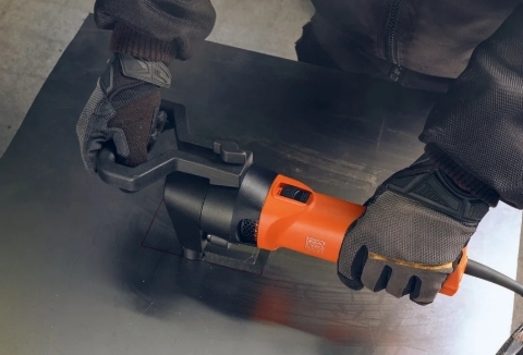 Výkonný elektrický stříhač určený na přesné řezání plechů bez deformace. Díky schopnosti procházet po křivce umožňuje jednoduché otáčení v jedné pozici, což je ideální pro drážky, výřezy a šablony v plechu.