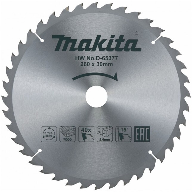 MAKITA D-65377 - Pilařský kotouč na dřevo 260mm x 30mm x 40Z